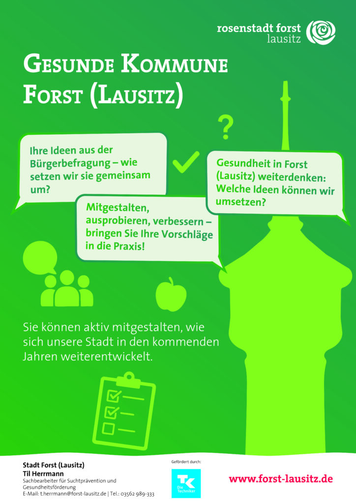 (pm) Mit dem durch die Techniker Krankenkasse geförderten Projekt „Gesunde Kommune“ setzt die Stadt Forst (Lausitz) ein starkes Zeichen für Prävention und Gesundheitsförderung. Nach Abschluss der bis Dezember laufenden Bürgerbefragung, an der sich zahlreiche Forsterinnen und Forster beteiligt haben, werden die ersten Ergebnisse nun öffentlich vorgestellt und gemeinsam weiterentwickelt.